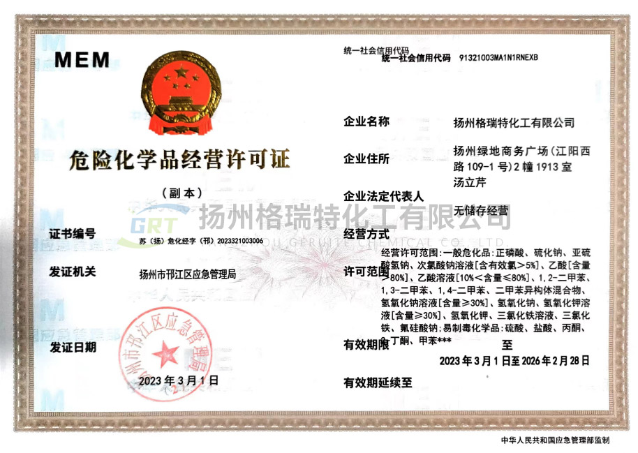 揚州格瑞特化工有限公司生產工廠坐落于江蘇省海安縣胡集工業園區和海安精細化工工業園。總公司成立于1999年,是集科、工、貿為一體的現代化生產型企業。專業致力于水處理劑、紡織印染助劑、化纖油劑等產品的科研、開發、生產和銷售??偣菊嫉孛娣e40000m,建有現代化標準廠房,擁有先進的生產設備。年產各類水處理劑系列產品12000噸,紡織印染助劑5000噸,產品12個系列40多個品種??偣咀⒅丶夹g投入,設立產品研發中心和環保運營中心,聘請了多位專家為公司技術顧問,并和多個重點院校建立了長期技術合作開發關系,是南通大學、江南大學、南京工業大學產學研基地。